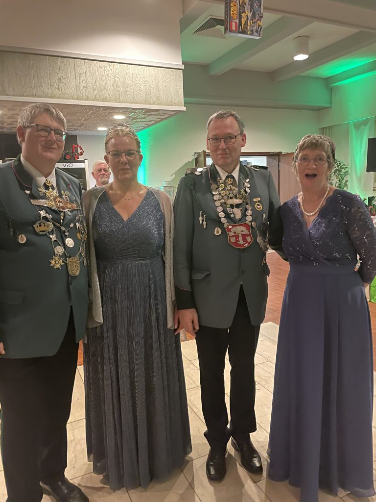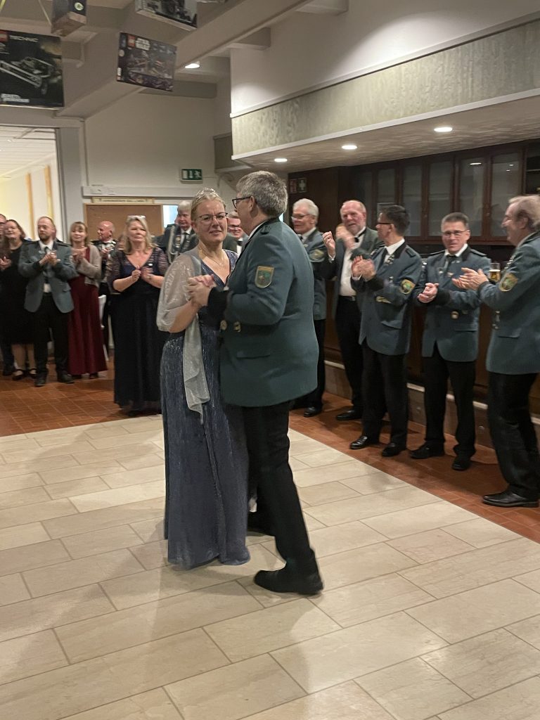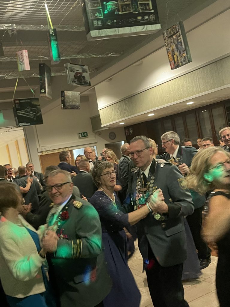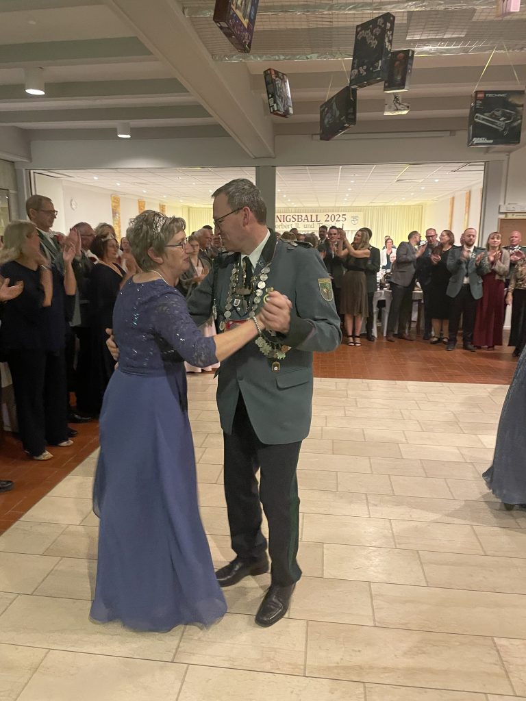 Nach einem schmackhaften Buffet wurde mit dem Ehrentanz der Majestäten Norbert II. und Timo I. mit ihren Partnern die Tanzfläche eröffnet. Ein DJ übernahm das musikalische Programm und erfüllte den Saal mit abwechslungsreicher Musik – die Tanzdielen hatten kaum Pause.