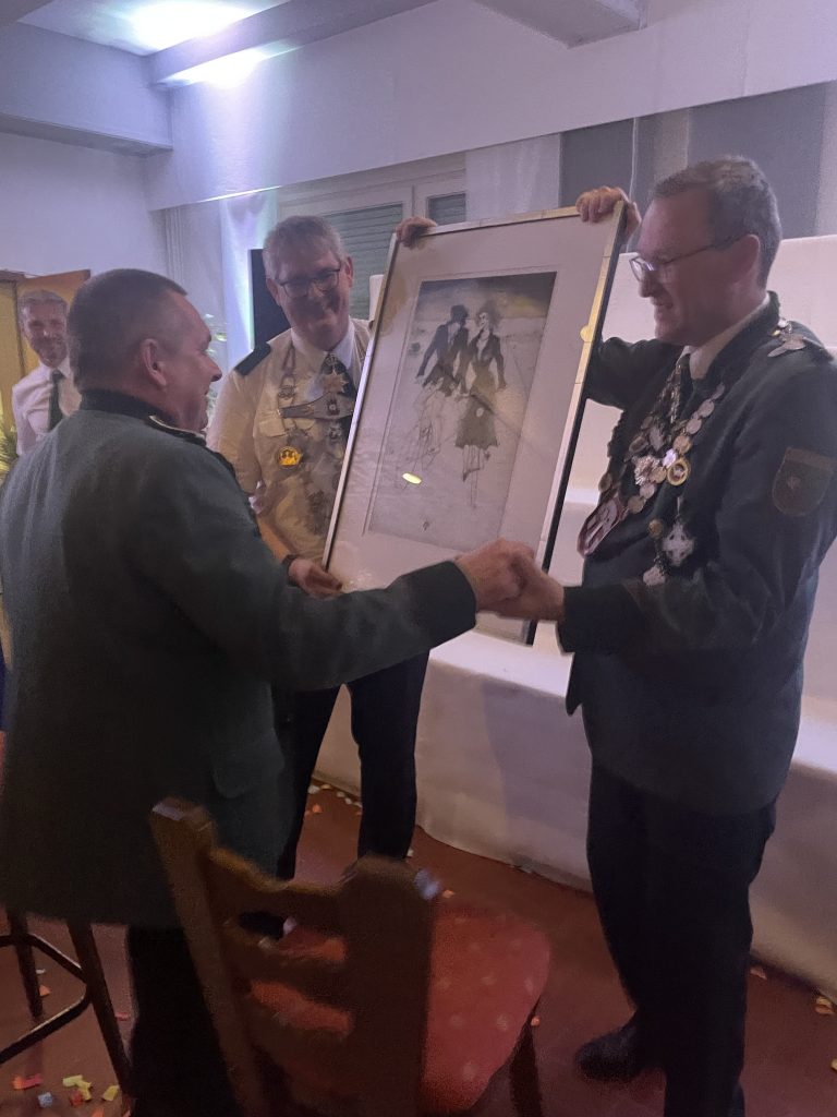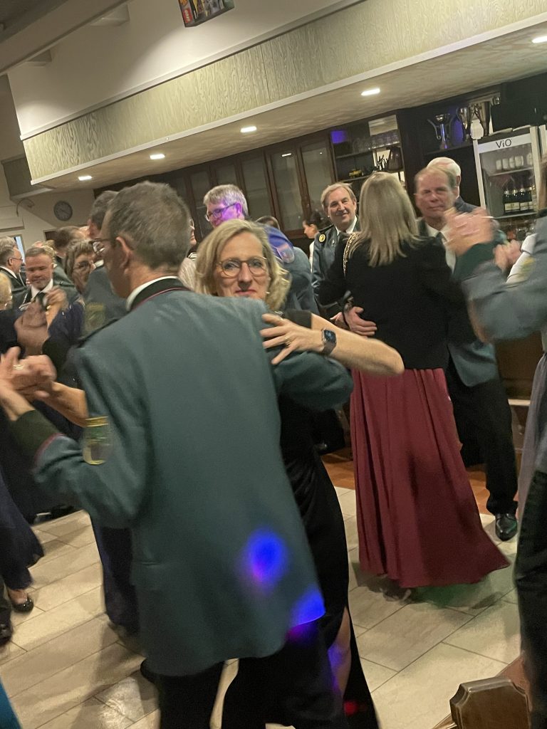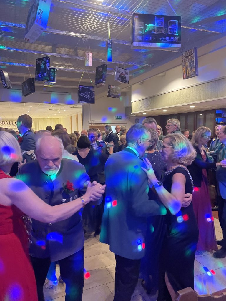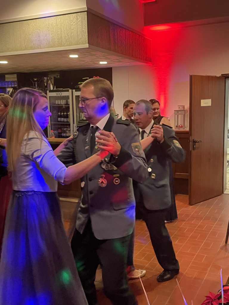 Nach einem schmackhaften Buffet wurde mit dem Ehrentanz der Majestäten Norbert II. und Timo I. mit ihren Partnern die Tanzfläche eröffnet. Ein DJ übernahm das musikalische Programm und erfüllte den Saal mit abwechslungsreicher Musik – die Tanzdielen hatten kaum Pause.